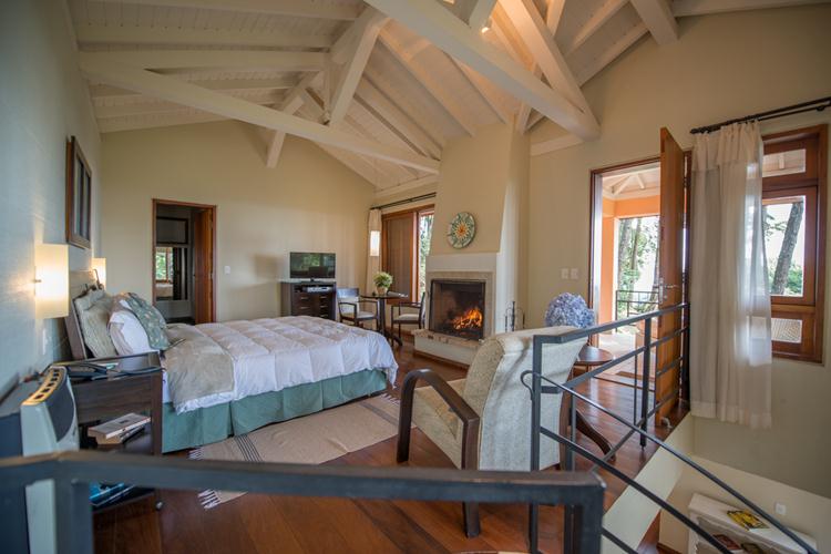 As Suítes são cercadas por um bosque natural planejado, com pinheiros, espécimes exuberantes e flores exóticas existentes na natureza de Monte Verde.