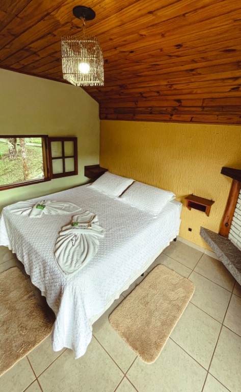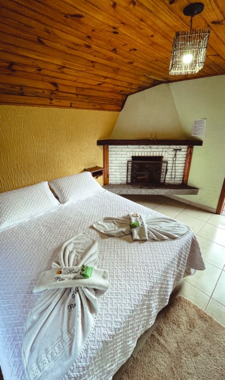Acomoda até 02 pessoas. O ambiente possui: cama de casal queen, TV 32, guarda roupa personalizado, varanda, lareira, wi-fi, frigobar, mesa com acentos, suíte com duchas super quentes aquecida a gás e roupas de cama e banho. Não é permitido crianças nessa acomodação