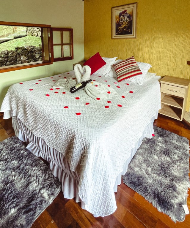 Acomoda até 02 pessoas. O ambiente possui: cama de casal queen, TV 32, guarda roupa personalizado, hidromassagem, varanda, lareira, wi-fi, frigobar, mesa com acentos, suíte com duchas super quentes aquecida a gás e roupas de cama e banho. Não é permitido crianças nessa acomodação