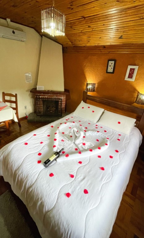 Acomoda até 02 pessoas. O ambiente possui: cama de casal queen, TV 32, guarda roupa personalizado, hidromassagem, varanda, lareira, aquecedor, wi-fi, frigobar, mesa com acentos, suíte com duchas super quentes aquecida a gás e roupas de cama e banho. Não é permitido crianças nessa acomodação