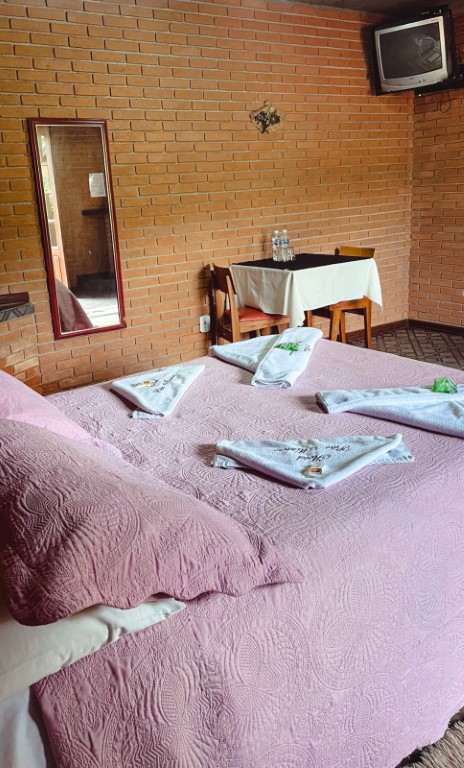 Acomoda até 02 pessoas. O ambiente possui: cama de casal,TV, guarda roupa personalizado, lareira, wi-fi, frigobar, mesa com acentos, suíte com duchas super quentes aquecida a gás e roupas de cama e banho. Não é permitido crianças nessa acomodação