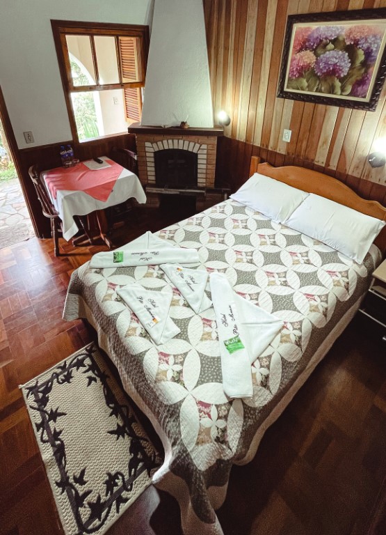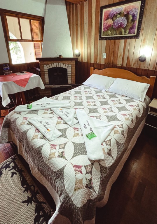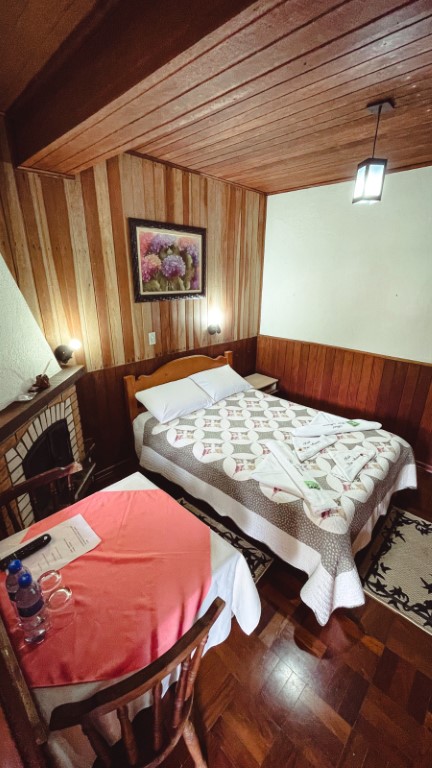 Acomoda até 02 pessoas. O ambiente possui: cama de casal,TV, guarda roupa personalizado, lareira, wi-fi, frigobar, mesa com acentos, suíte com duchas super quentes aquecida a gás e roupas de cama e banho. Não é permitido crianças nessa acomodação