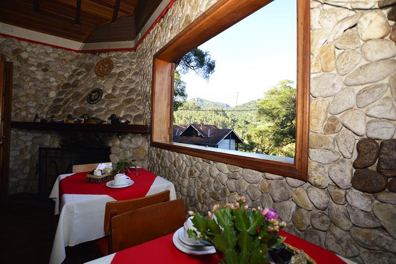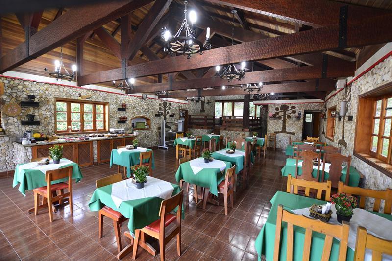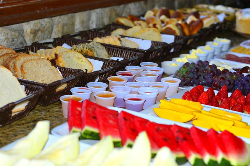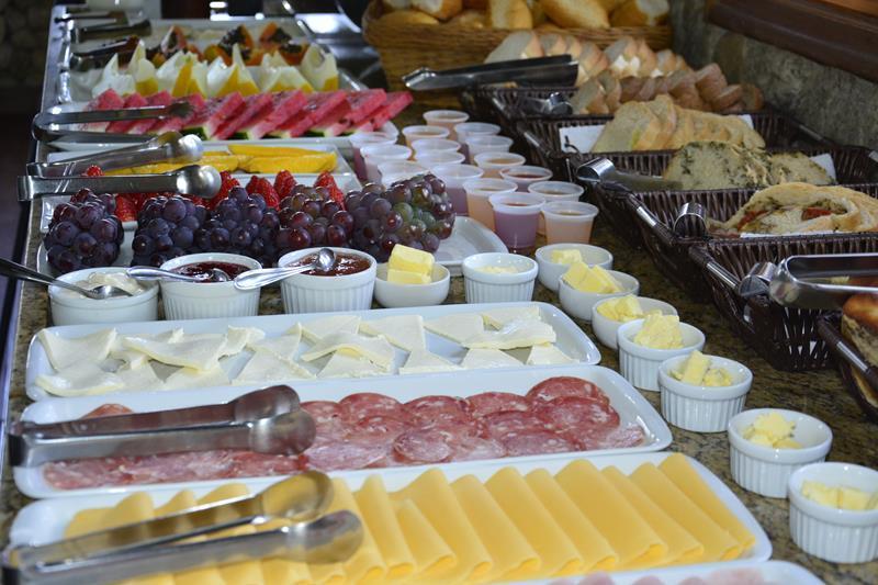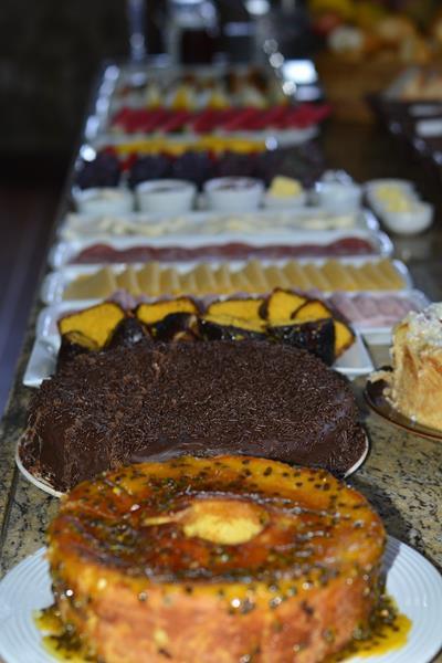 Atravessando a rua você encontrará o Salao de Café da manhã nosso Hotel, onde você poderá saborear um delicioso e caseiro café da manha com frutas frescas, bolos e pães caseiros, frios, chás, iogurtes, sucos salgados e diversas outras opções para surpreender seu paladar. Servimos sopa no Chalé, solicite mais informações.