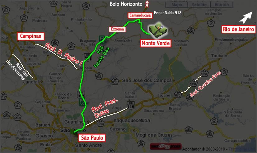 Saindo de São Paulo, utilize a rodovia Fernão Dias até a cidade de Camanducaia, depois oriente-se pelas placas que encontrará na cidade de Camanducaia, e siga por mais uns 30 km montanha acima.