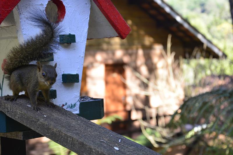 poderá observar e alimentar esquilos e aves silvestres. Chalés espaçosos e bem equipados, apartamentos igualmente agradáveis e com exuberante vista !